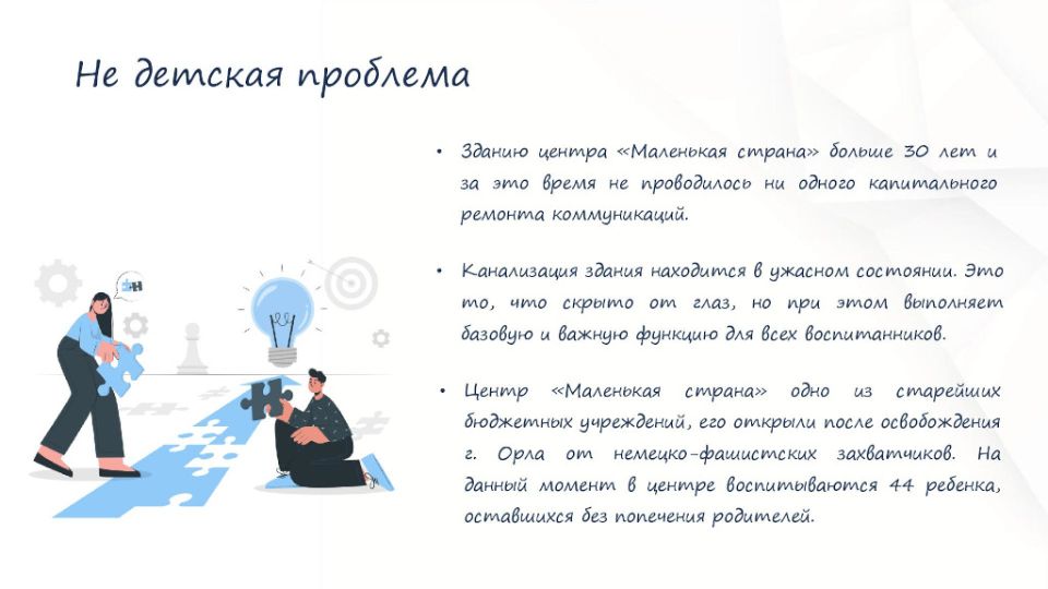Это будет самый главный подарок учреждению, которое закладывает фундамент благополучной и счастливой жизни детей, оставшихся без попечения родителей. Основная проблема будет решена.
